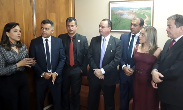 A Presidente do Consórcio Intermunicipal Multimodal - CIM, Prefeita de Vila Nova dos Martírios Karla Batista e o Presidente da Federação dos Municípios do Estado do Maranhão - FAMEM, prefeito de Igarapé Grande Erlanio Xavier estiveram na tarde de ontem (13), em Brasília/DF, em reunião com o Diretor Geral da Agência Nacional da Mineração - ANM Victor Bicca e o Diretor de procedimentos arrecadatórios Ricardo Parayba, acompanhados pelos Deputados Federais Juscelino Rezende Filho, Gil Cutrim, Bira do Pindaré, Fufuquinha, Cleber Verde, Edilásio Junior e Júnior Lourenço, para solicitar junto a Agência Nacional de Mineração a liberação dos recursos acumulados desde junho a novembro de 2018, para fazer a partilha dos royalties da mineração, oriundo da Lei 13.540/2017 e do decreto presidencial 9.407/2018.