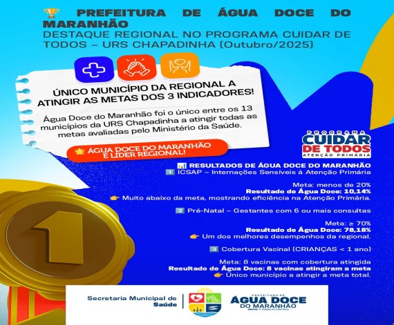 Água Doce do Maranhão é o único município da URS Chapadinha a atingir todas as metas do Programa Cuidar de Todos.