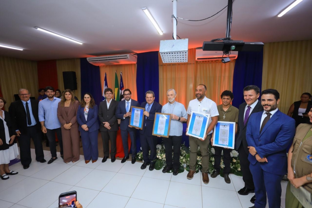 Um dos momentos mais simbólicos da solenidade foi a entrega da Certidão de Inteiro Teor da Matrícula Imobiliária das quatro paróquias da sede da Diocese de Bacabal: São Francisco, Santa Teresinha, Imaculado Coração de Fátima e Sant’Ana e São Joaquim.