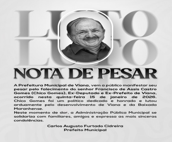 O prefeito Carrinho Cidreira lamentou, com profundo pesar, o falecimento do ex-prefeito de Viana, Francisco de Assis Castro Gomes, conhecido como Chico Gomes, ocorrido nesta quinta-feira, em São Luís.