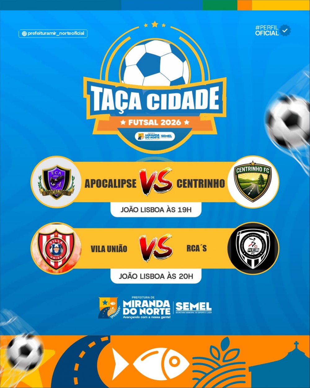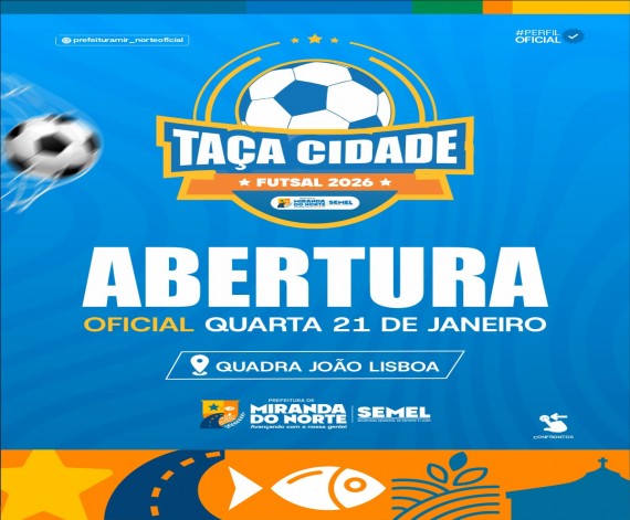 A Taça Cidade edição 2026 terá sua abertura oficial nesta quarta-feira (21), a partir das 19h, na Quadra João Lisboa, em Miranda do Norte.