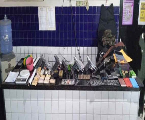 Durante o cumprimento dos mandados, foram apreendidas oito armas de fogo, sendo quatro pistolas, dois revólveres e duas armas longas calibre 20, além de 109 munições de diversos calibres. As equipes também apreenderam mais de 1 kg de crack e outras porções de entorpecentes.