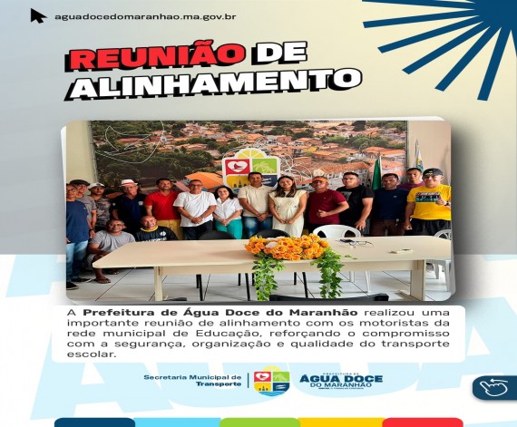 A Prefeitura de Água Doce do Maranhão realizou uma importante reunião de alinhamento com os motoristas da rede municipal de Educação, reforçando o compromisso com a segurança, organização e qualidade do transporte escolar.