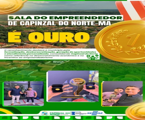 A Sala do Empreendedor de Capinzal do Norte–MA conquistou o Selo Sebrae de Referência em Atendimento – Padrão Ouro, concedido pelo Serviço Brasileiro de Apoio às Micro e Pequenas Empresas (Sebrae), pelo trabalho de excelência realizado em 2025 no fortalecimento dos pequenos negócios.