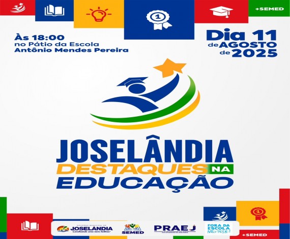 Prefeitura de Joselândia convida a população para participar da Solenidade de Premiação do Prêmio "Joselândia Destaques na Educação".