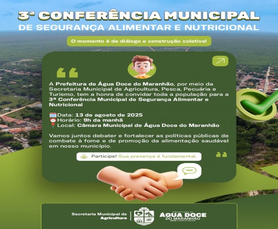Prefeitura de Água Doce do Maranhão convida para a 3ª Conferência Municipal de Segurança Alimentar e Nutricional