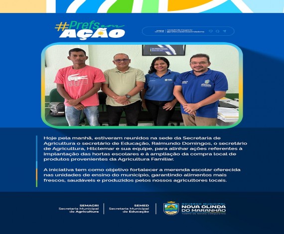 Na manhã desta quinta-feira, o secretário de Educação, Raimundo Domingos, e o secretário de Agricultura de Nova Olinda do Maranhão, Hilclemar, estiveram reunidos com suas equipes na sede da Secretaria de Agricultura para discutir ações estratégicas…