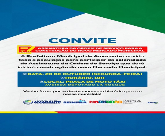 Atenção, população amarantina! Tem novidade boa chegando! A tão esperada construção do novo Mercado Municipal está prestes a começar. O pontapé inicial será com a assinatura da Ordem de Serviço, na próxima segunda-feira,…